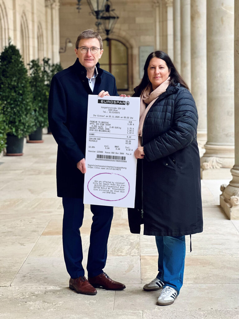 Wien: SPAR, EUROSPAR und INTERSPAR drucken vom 25. November bis 10. Dezember 2025 gemeinsam mit der Stadt Wien Notrufnummern und Hinweise auf den 24-Stunden-Frauennotruf auf die Kassazettel – zusätzlich mit englischem Hinweis. Alle SPAR-Märkte der Stadt machen mit. Die Information ist leicht zugänglich, anonym und unmittelbar.
